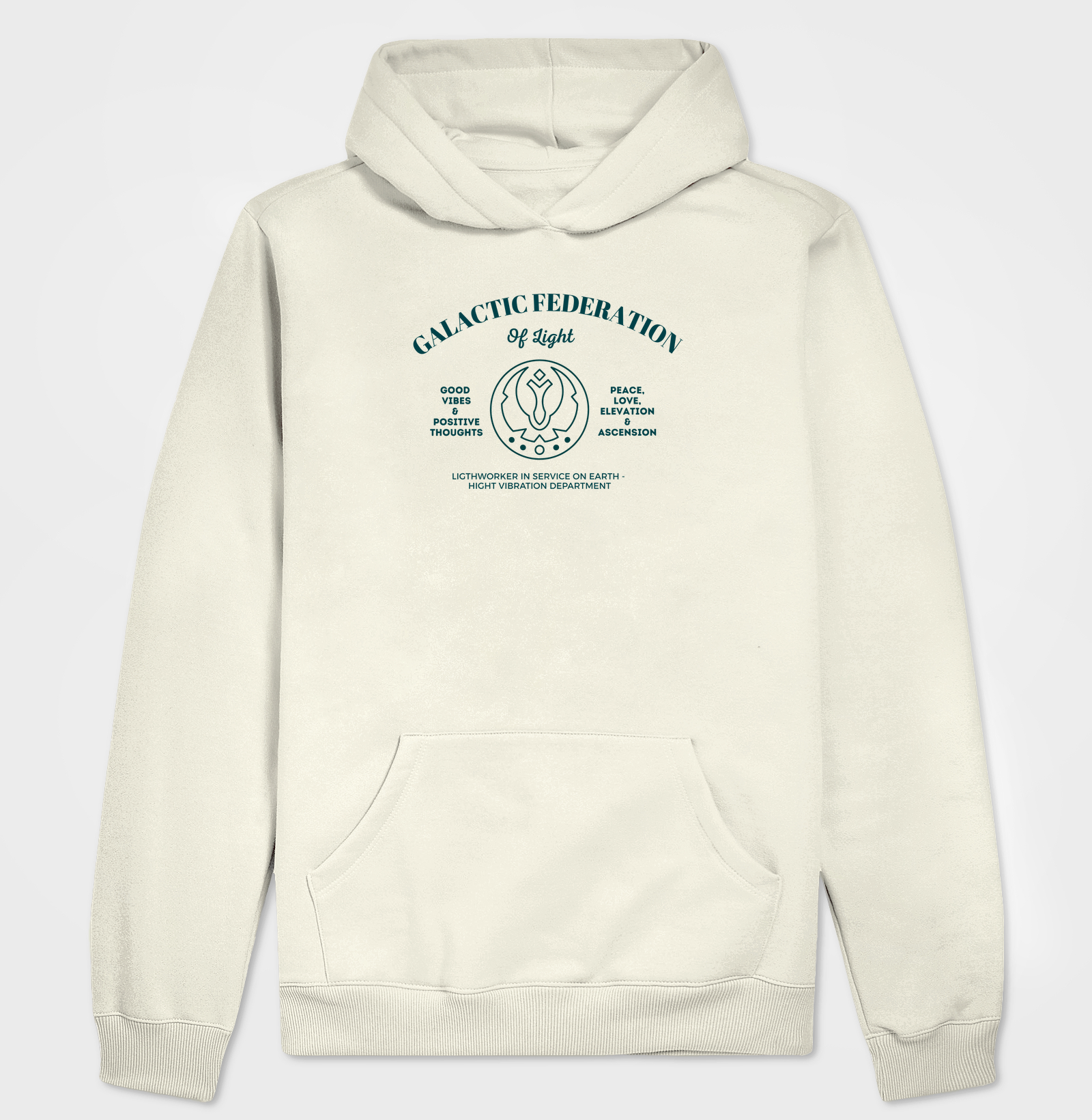 Você está a serviço. 🌍✨ Com a inscrição "Federação Galáctica de Luz", esta estampa carrega uma missão: espalhar boas vibrações, pensamentos positivos, paz, amor, elevação e ascensão. No peito e na alma, o chamado: "Trabalhador da luz a serviço na Terra – Departamento de Alta Vibração." Porque vestir-se também é declarar quem você é — um ser consciente, conectado e em missão. Ideal para sementes estelares, buscadores, curadores e todos que sentem no coração que fazem parte de algo muito maior. 🌟 Use com orgulho. Vibre alto. Sirva com estilo. Uma peça da Coleção Galáctica da Star Nation.